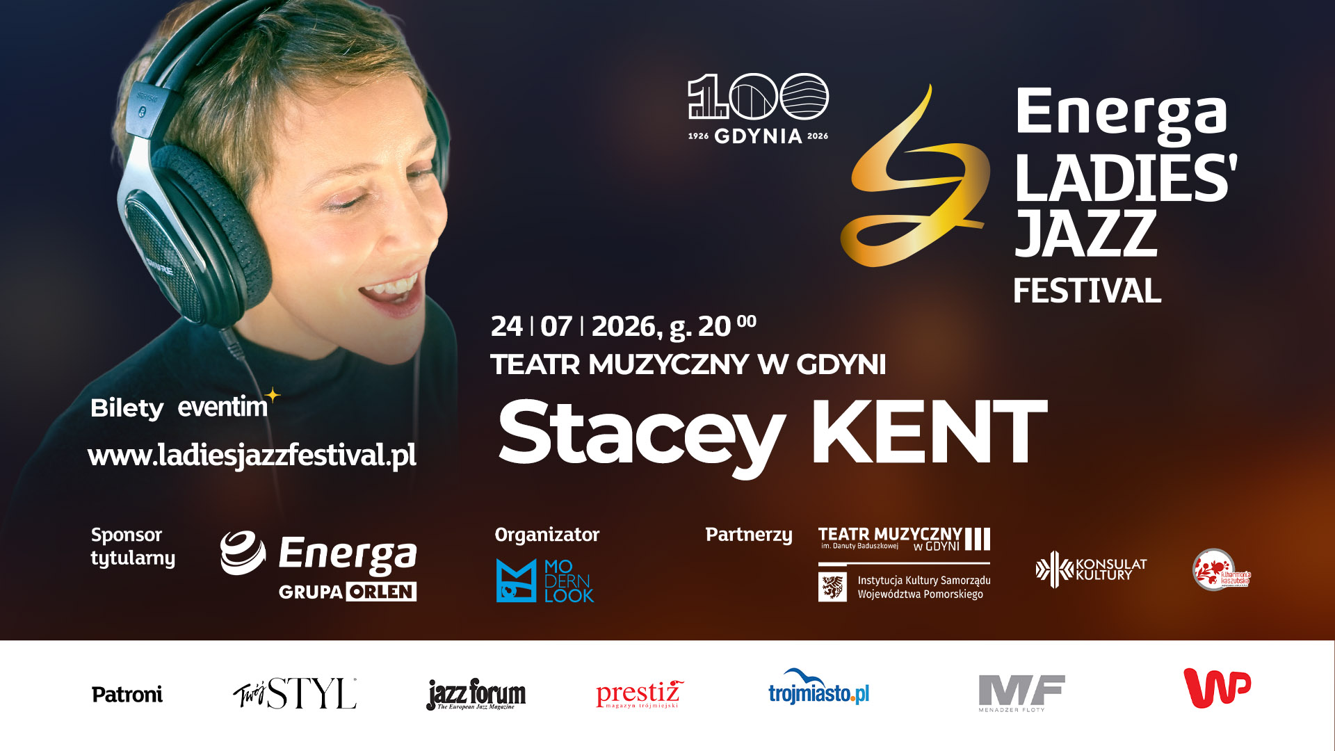 W 1995 roku nagrodził ją sam Michel Legrand i od tego czasu jest z nami i dla nas – obdarowuje nas fantastycznymi płytami i cudownymi koncertami, a my odwzajemniamy się niesłabnącą miłością i zachwytem, ubierając te płyty w platynę i złoto. Ubóstwiamy bywać na jej koncertach i chłonąć coraz to nowe projekty z coraz to innymi wspaniałymi artystami u boku. Stylistyczne ramy działalności Anny Marii Jopek tworzą trzy obszary muzycznych doświadczeń: wyniesione z domu zamiłowanie do folkloru, klasyczne wykształcenie muzyczne (absolwentka klasy fortepianu Uniwersytetu Muzycznego im. Fryderyka Chopina) oraz miłość do jazzu. Dzięki niej owo „contemporary eclectic jazz“ – jak mawiają niektórzy – jest dla nas frajdą, uniesieniem i gęsią skórką. Przynosi piękne, mądre słowa i melodie, pozwala obcować z jakością najwyższej próby i tęsknić za tym wszystkim do następnego razu. Artystce będzie towarzyszył znakomity Piotr Wojtasik na trąbce, Marcin Kaletka na saksofonie, Michał Tokaj przy fortepianie, Michał Barański na kontrabasie i Łukasz Żyta na perkusji. Jednym zdaniem: w poniedziałek, 20 lipca 2026 roku w przytulnym Konsulacie Kultury w stuletniej Gdyni oni będą tylko dla nas. Kto śmie twierdzić, że poniedziałki nie mogą być magiczne? Na Energa Ladies’ Jazz Festival bywają takie ze wszech miar.